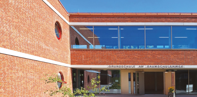 Unsere vierzügige Grundschule hat einen gebundenen Ganztag und bietet unseren Schülerinnen und Schülern vielfältige Möglichkeiten zum Lernen und zur Entwicklung ihrer persönlichen Fähigkeiten. Dazu steht ihnen eine moderne Schulinfrastruktur zur Verfügung: Geräumige und helle Unterrichts- und Differenzierungsbereiche, ein weitläufiges Außengelände sowie eine Mensa mit eigener, bio-zertifizierter Küche.