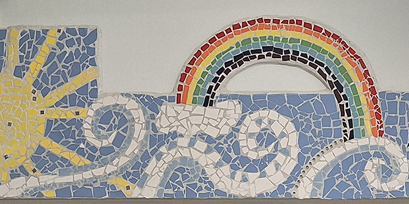 Unsere Lernhäuser Feuer, Wasser, Erde, Luft haben wunderschöne Mosaike um ihre Eingänge bekommen. Bereits in unserer Elemente-Projektwoche im März 2025 hat sich